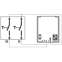 Four standard buttons, two switches or one blind switch can be connected to the RTS03 built-in transmitter.
